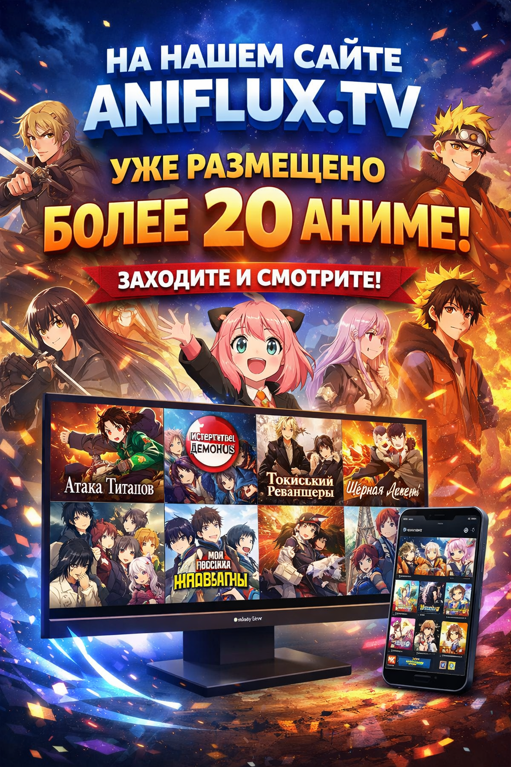 На сайте AniFlux.TV уже доступно более 20 аниме-тайтлов разных жанров. Мы постепенно пополняем библиотеку и добавляем новые сериалы, чтобы вы могли см...
