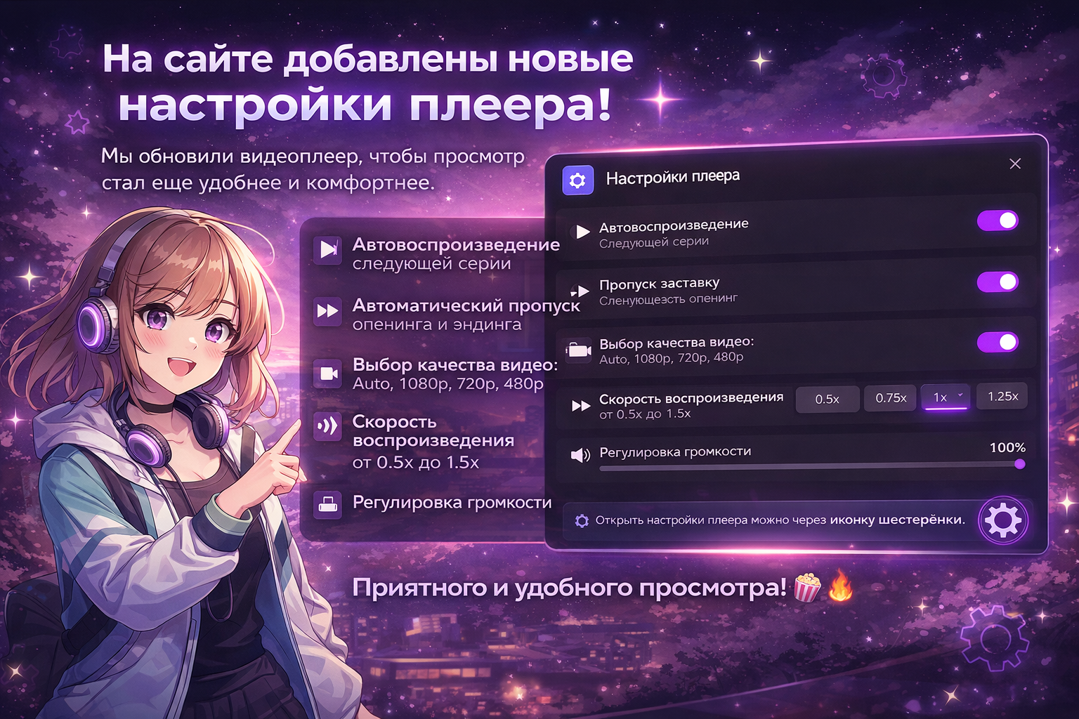 🎬 На сайте добавлены новые настройки плеера! Мы обновили видеоплеер, чтобы просмотр стал ещё удобнее и комфортнее. 🔧 Теперь доступно: ▶️ Автовосп...